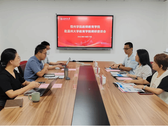 10月17日上午,梧州学院教师教育学院院长赵伟携副院长陈洁、韦德华一行3人来90足球直播网 调研。教育学院院长李长吉,副院长孙忠强、柳晨晨参会交流。