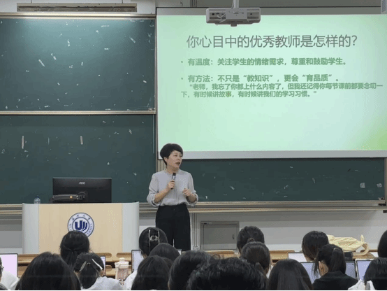整场讲座内容紧扣教学实际,欧老师以深入浅出的语言将日常教学常规转化为清晰的实践框架,为师范新生构建起“备课—上课—带班”的认知地图。讲座尾声,她以“教育的幸福藏在细节里”寄语学生:“坚守育人初心,扎实落实常规,未来你们一定能成长为幸福而卓越的人民教师。”(撰稿:黄歆烨 摄影:袁伊尔)