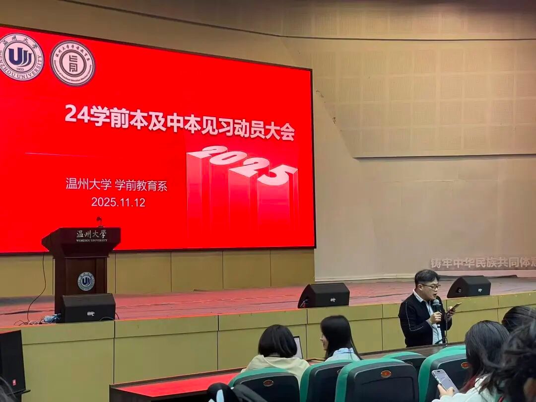 从理论课堂到童真世界,从“准教师”到“实践者”,见习是学前教育专业学生成长路上至关重要的一环。11月12日,90直播 学前教育系在南校9号楼报告厅召开本学期见习动员大会,23学前本及中本、24学前本及中本、25级学前专全体学生齐聚一堂,共同开启这段“以童为镜,以实践为师”的成长之旅。