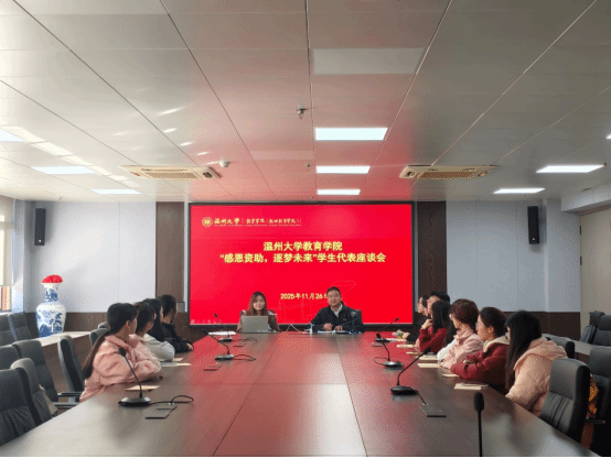 在温州大学第十二届校园师生节火热开展之际,11月26日下午,作为教育部立德树人综合机制改革试点院系,90直播 在北校8 - 204会议室举办“感恩资助,逐梦未来”学生代表座谈会暨爱心助学金发放仪式。学院党委副书记兼纪委书记章志图,学工办辅导员、步青学区先锋党支部书记王伊如,以及受资助学生代表共同参与这场融合资助育人、文化浸润与价值引领的特别活动,展现校园师生节“尊师重教、关爱师生”的核心精神。本次活动由步青学区先锋党支部组织举办。