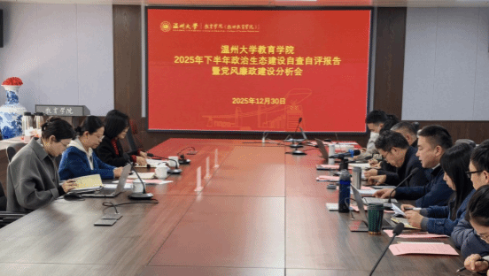 学院党委副书记兼纪委书记章志图汇报2025年下半年政治生态建设自查自评及党风廉政建设情况。学院党委始终把政治建设摆在首位,通过落实“第一议题”、党委理论学习中心组学习会等制度,推动党的创新理论入脑入心。制定全面从严治党主体责任清单,严格执行“两个议事规则”,实现重点领域廉政风险全覆盖。开展“罗山清风廉洁文化月”系列活动,全年未发生师德师风负面问题。下一步,将深化师德教育、强化重点领域监督、完善制度体系,以严的基调推动全面从严治党向纵深发展。