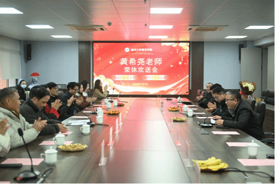 张敏在讲话中高度评价黄希尧老师“以四十二载光阴生动诠释‘师者’二字的厚重与光辉”,感谢他在教育教学、学科建设、青年教师培养、社会服务等方面的贡献,并寄语黄老师“银发智慧永续,教育情怀长青”。院长李长吉亦表达对黄老师的敬意与感谢。