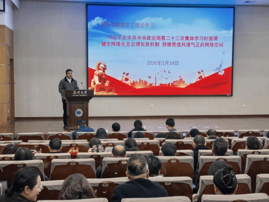 2026年1月14日下午,90直播 在北校区信息楼报告厅召开期末教职工大会暨理论学习会。学院党委书记张敏主持会议。
