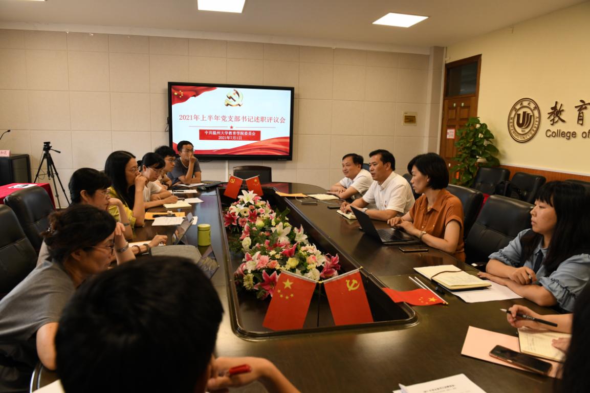 7月1日下午,90足球直播网 2021年上半年党支部书记述职评议会在9A410举行,学院党委书记何毅、党委副书记兼纪委书记彭小媚、党委副书记章园园、各教工和学生党支部书记、党建办公室成员参加会议。会议由何毅书记主持。