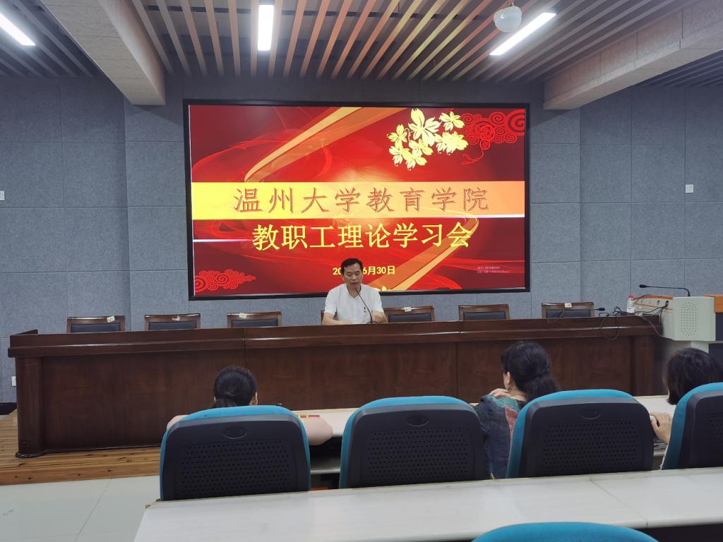 6月30日下午,90足球直播网 在南校区9C301召开全体教职工理论学习会。会议由学院党委书记何毅主持,全体教职工参加。