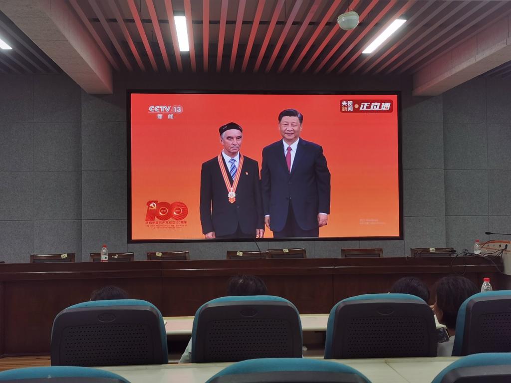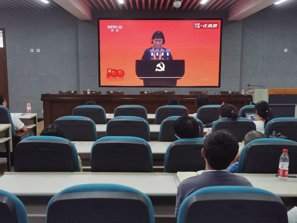 会议组织全院师生观看庆祝中国共产党成立100周年“七一勋章”颁授仪式视频,学习“七一勋章”获得者张桂梅老师的先进事迹,学习习近平总书记的重要讲话。