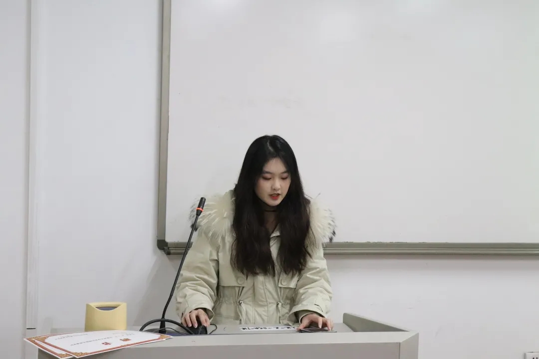 主任团成员也对本学期工作进行了发言。主任邵可儿谈到,在这学期的工作中,自己收获了在宣传工作方面的成长,希望在下学期能进一步提升自己的眼力和审稿功力,同时,她还感恩遇到党服的每一位小伙伴,希望在下学期的工作中与各部门加强联系,进一步落实相关工作。