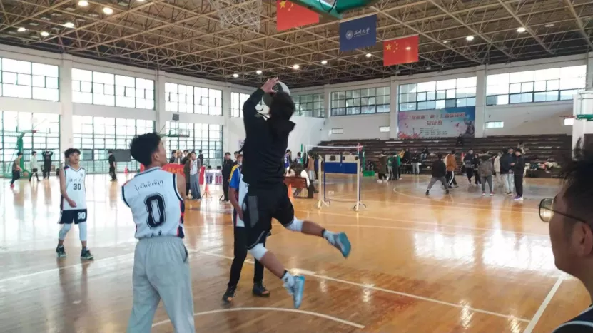 比赛分两场进行,上半场比赛中球员们热情高涨,一路奋勇,你争我抢,各展风采,最后,温州大学以64:13比分赢得上半场胜利。虽然比分呈现出明显优势,但大家都没有松懈,汗流浃背的球员们表现了比赛的精彩程度,期待下半场精彩的收尾。让我们拭目以待吧!