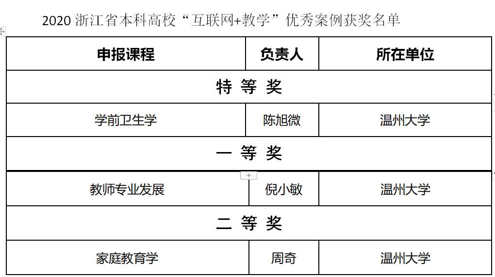 近日,浙江省高等教育学会公布了2020浙江省本科高校“互联网+教学”优秀案例获奖名单,90足球直播网 3门课程案例获奖,分别是陈旭微教授《学前卫生学》、倪小敏教授《教师专业发展》、周奇教授《家庭教育学》。