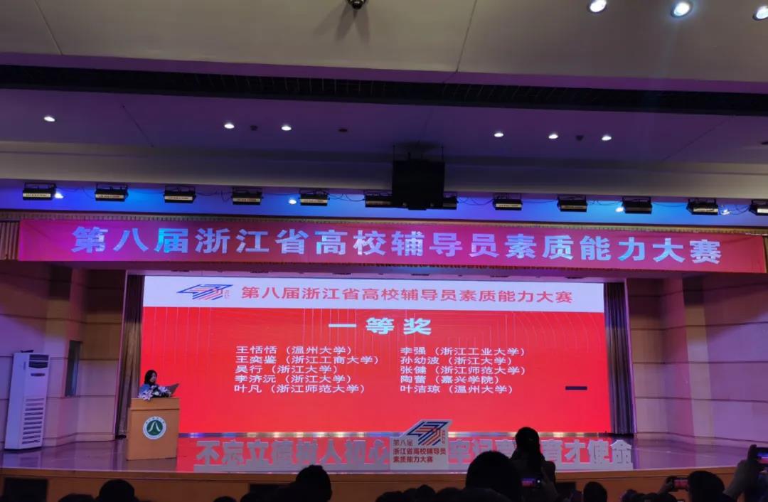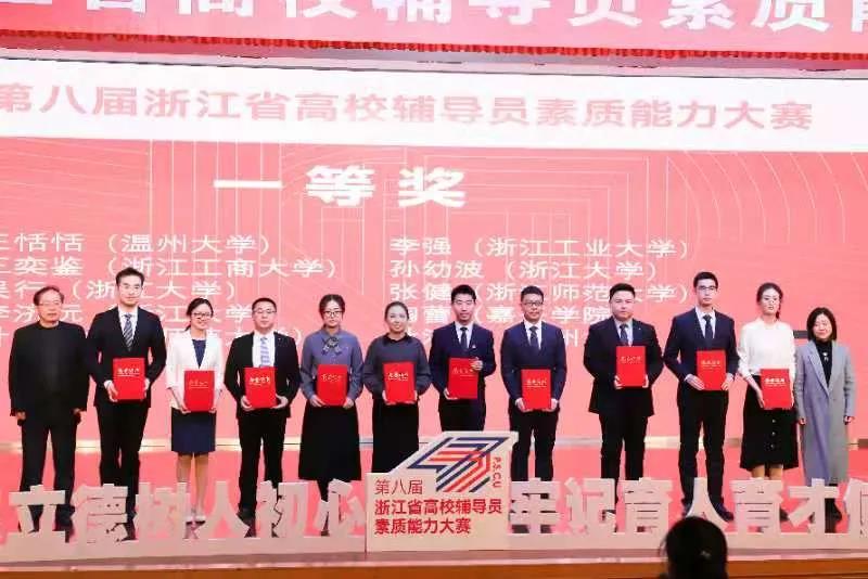 12月1日至3日,第八届浙江省高校辅导员素质能力大赛在浙江师范大学举行。本届大赛,浙江省共87所高校的106位辅导员参加了比赛,有150余位领队参加观摩。经过基础知识测试、案例研讨和谈心谈话三个环节的激烈角逐,学校两位参赛辅导员均斩获一等奖,学校获优秀组织奖。其中,90足球直播网 辅导员王恬恬老师以扎实的理论基础、专业的能力素养和丰富的工作沉淀荣获全场第一,展现了90足球直播网 辅导员出色的职业能力与个人风采。