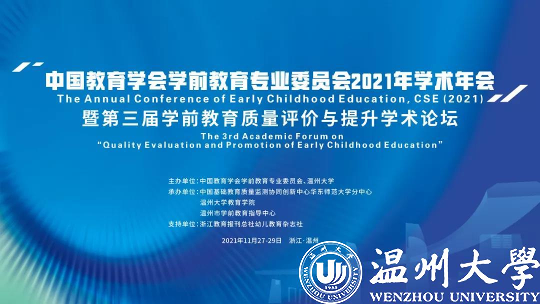 2021年11月27日至29日,由中国教育学会学前教育专业委员会与温州大学共同主办,90足球直播网 、中国基础教育质量监测协同创新中心华东师范大学分中心、温州市学前教育指导中心共同承办的中国教育学会学前教育专业委员会2021年学术年会暨第三届学前教育质量评价与提升学术论坛,在温州大学圆满落下帷幕。本次会议包括开幕式、五场主旨报告、四场分论坛31个分会场报告以及一场幼儿园课程改革实践现场研讨暨上海名师高峰论坛,吸引了大量来自海内外的学前教育专家、学者和一线工作者参加,总访问量高达25.15万人次,线上评论互动高达2万余次。其中,国内参会者遍布东中西部各省市,在浙江、四川、山东、陕西、广东、河南、天津等地均有较多单位组织集体学习。本次会议为线上线下相结合形式纯公益展开,所有对学前教育质量评价与提升感兴趣者均可免费参会。此外会议采取直播与回放同步的形式增强参会的便利性,引起社会各界的热烈反响,受到中国新闻网、中国教育在线、中国教育信息化网等百余家国家、省市级媒体关注报道。