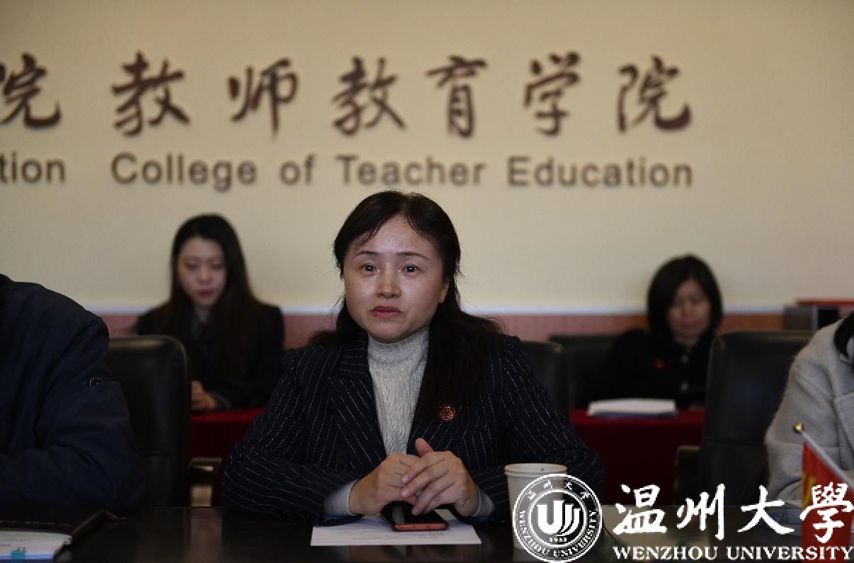 校妇联副主席何平作指导发言。在温州大学党委领导下,校妇联扎实推进“巾帼文明岗”创建工作,凝聚妇女力量,展现行业形象。近年来温大巾帼文明岗的创建,为温大树立了一个又一个先进的女性群体形象,学前教育系就是女性优秀知识分子群体的代表。她高度肯定了温大学前在建设巾帼文明岗过程中的付出和努力!希望学前教育系巾帼文明岗能够以此次推进会活动为新起点,以促进妇女成长成才、推动专业建设和发展、服务社会和谐文明为目标,激发妇女岗位建功热情,发挥典型示范作用,引领妇女在担当实干中开创新局面。