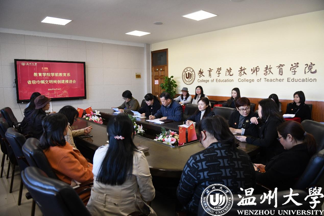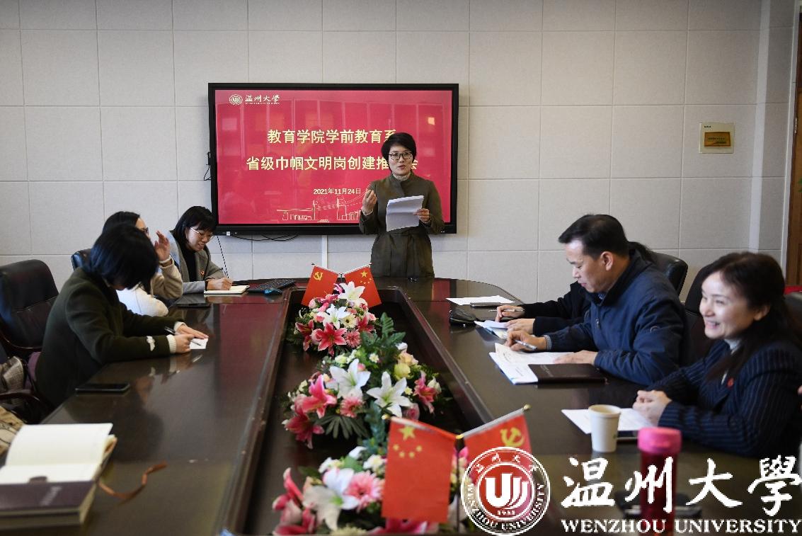 据悉,学前教育系于2021年5月受温州市政府妇女儿童工作委员会命名为第二十批温州市巾帼文明岗。自争创巾帼文明岗以来,本岗围绕组织建设、制度建设、创建氛围、创建活动、活动管理、创建成效等方面积极开展各项工作,立足本职岗位讲奉献、树新风、立师德、比业绩,为全面推进学前系的整体建设贡献“巾帼”力量。温大学前的“巾帼们”营造了良好的创建氛围和创建保障,取得了较为显著的创建成果,在荣誉、教学、科研、学生培养和服务地方等领域都展示了新时代女性风采,在开展师生工作坊、知心姐姐、儿童剧公演等品牌活动创建方面形成典型示范作用。