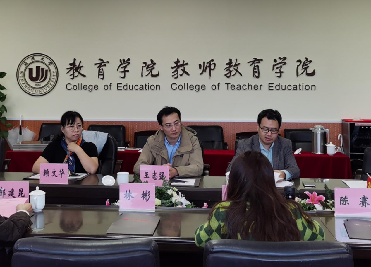 王志强副院长首先介绍了学院近年来的发展与成果,温州大学教院最近几年来飞速发展,全面引进各方面优秀人才,目前学院博士学历教师占比约为50%,教学师资力量雄厚。近年来学院研究生数量增长迅速,预计2023年研究生规模将达到500余人。王院希望可以通过校内外导师联合培养与教育实践基地的合作有效提升研究生教学与科研能力。