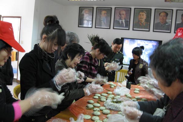 为深入学习实践科学发展观,锤炼当代大学生党员的责任意识和使命意识,90直播 第四党支部学生党员自发组织起来,于4月1日下午前往温州市军分区干休所,和这里的老干部们一起重温历史,接受革命传统教育。恰值清明时节,这批年轻活跃的学前教育专业的党员们还与老干部们一起动手,共做清明果,共品清明果,老少两代其乐融融。