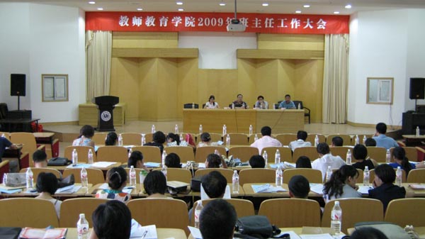 9月5日下午,教师教育院2009年班主任工作会议在温州大学南校区岩松堂雁山厅隆重召开。温州大学学生处处长潘玉驹、温州大学保卫处处长张希均莅临会议指导工作,学院领导胡来林、胡伟国、孙芙蓉、嵇小怡出席会议,各系主任、书记以及全体40名班主任蚕会议,会议由学院党总支书记胡伟国主持。