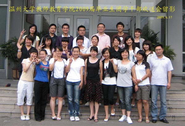 6月18日下午,温州大学教师90直播 2009年毕业生团学干部欢送会在教育楼311会议室隆重举行,90足球直播网 胡伟国、嵇小怡书记与2009届毕业生团学干部亲切交流,回顾大学期间的学生干部生涯。学生干部们普遍反映,大学期间的学生干部生涯,对自身素质提高、能力提升有莫大帮助,同时对自身就业竞争力与顺利就业有重要作用,大部分学生干部已经顺利就业。