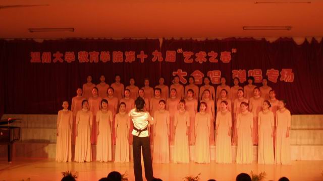 比赛进行的非常顺利,08大专(2)班的《忆江南》唱出了温婉缠绵的江南风韵,07中专(2)班的《花蛤蟆》则为我们展现了孩童游戏时的纯真与快乐,最后在《库斯克邮车》绿色军装的摇曳下为我们渲染了一片军旅之风。紧接着就是激动人心的弹出专场。选手们用双手在琴键上弹奏出悠扬的旋律,一边唱着动人心弦的歌曲。陈莹莹的《我来当老师》塑造了一个可爱机灵向往教师的孩童;曹瑶瑶的《剪羊毛》将我们带入了那美丽的澳大利亚农场,聆听清新淳朴的牧歌。选手们的精彩表演博得了阵阵的掌声。