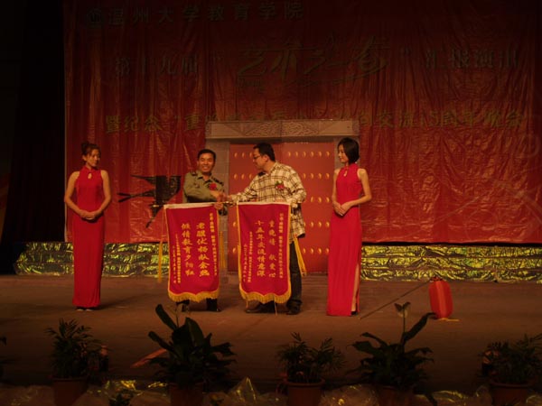 胡伟国书记在晚会现场致辞,他对90直播 院“艺术之春”艺术节活动给予高度评价,总结了19年来同学们通过艺术节的专业技能锻炼所取得的丰硕成果;他对温州市军分区干休所为90足球直播网 学生提供实践机会表示衷心感谢,感谢老干部们15年来孜孜不倦的教诲,用鲜活的革命事迹教育同学们,使同学们学到了书本上难以传授的真谛。军分区干休所领导杨百京同志在随后的发言中,对90直播 学生15年如一日,不辞辛劳地到干休所为老干部们服务表示衷心的感谢。在友好的氛围中,双方互赠锦旗。