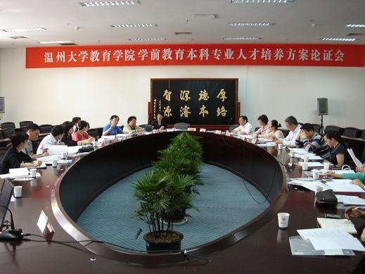 5月8日下午,90直播 在会展中心白鹿厅召开2009级学前教育专业本科培养方案论证会。特邀华东师范大学学前教育与特殊90直播 副院长周兢、浙江师范大学杭州幼儿师范学院副院长步社民以及温州市教育局相关职能部门领导、鹿城区幼儿园园长代表等7人参加会议。校党委副书记周湘浙、副校长林娟娟、教务处处长戴海东、学院领导及骨干教师出席了会议,会议由学院副院长潘玉进主持。