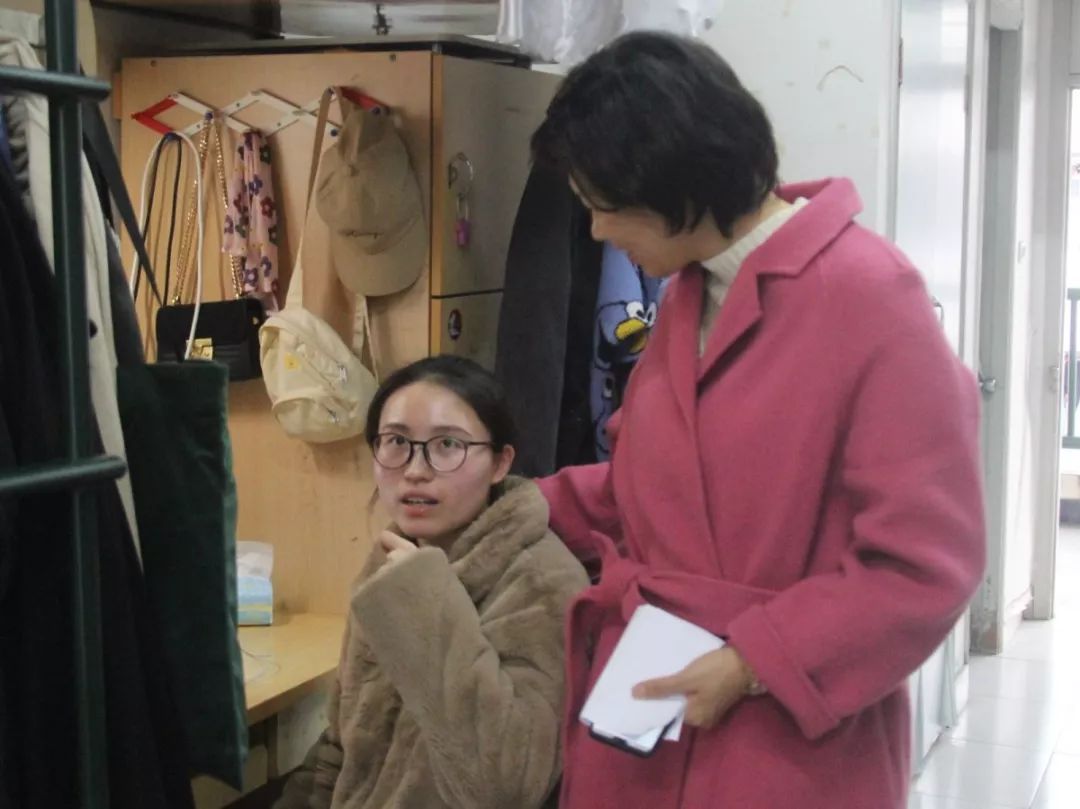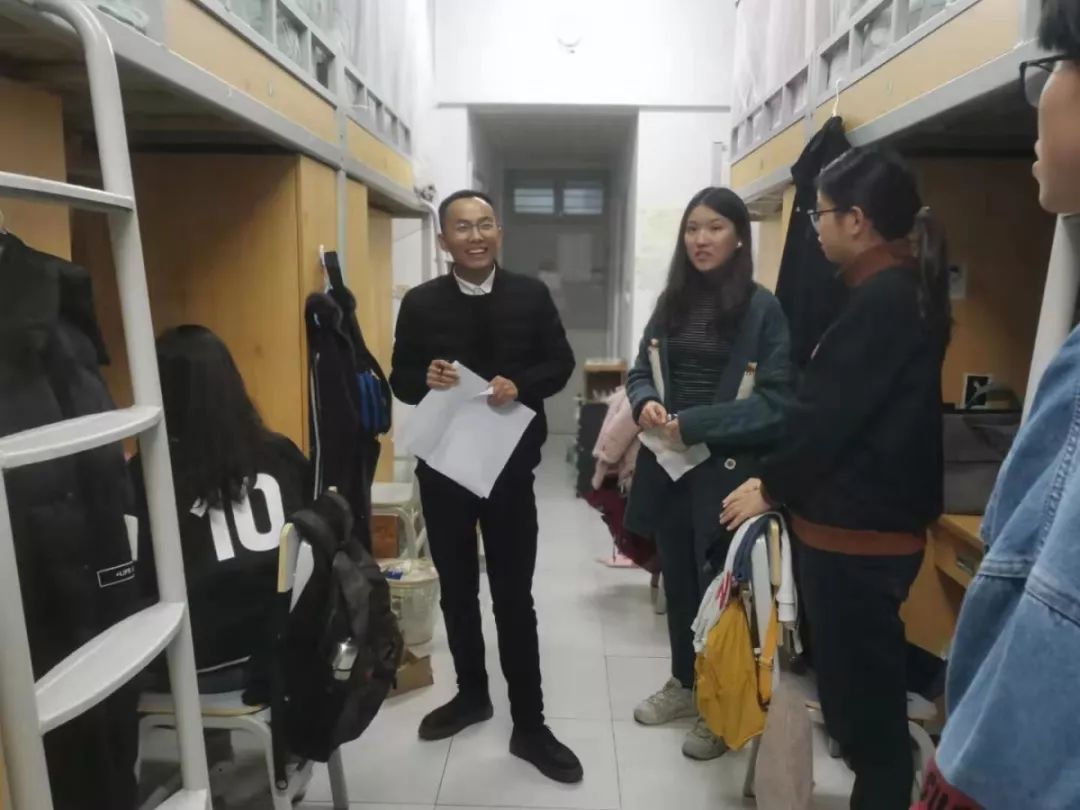 与此同时,学工办的相关辅导员也各自走访寝室,对教院学子进行生活学习上的指导,暖心的话语浸透了每一位学子的心灵。