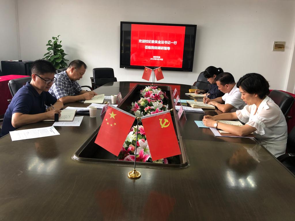 9月30日下午,党委委员、纪委书记、省监委驻温大监察专员吴金法一行莅临90足球直播网 调研指导。