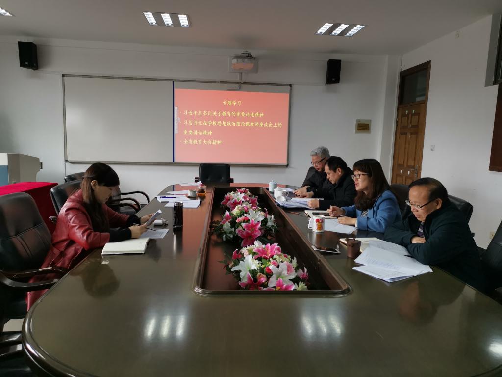 在南校区9A410会议室召开党委会专题学习习近平总书记在学校思想政治理论课教师座谈会上的重要讲话精神和全省教育大会精神,会议由杨立淮书记主持,学院领导班子及党委会成员出席。