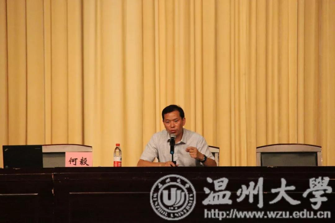 叶新东副院长以“大学生活的核心是‘学’”为主题向新生们介绍学院、专业与课程设置。“大学因学问者大,因馆藏丰富而大,也因培养人才而大。”叶新东解读了“大学”一词,鼓励新生尽快实现思想转变,多读书,多搜索,多做研究。此外,他还罗列与“学“相关的名词,为新生们敲响警钟,指出大学有淘汰率,不应将时间浪费于电子产品。对比成长与沦陷“曲线” ,叶新东指导新生如何规划大学,明确前进方向,让目标对准状态,使未来在自己的掌控之中。
