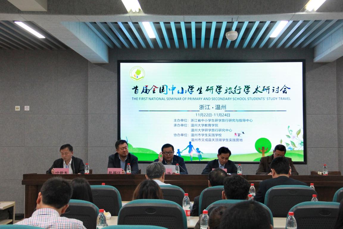 2019年11月23日到24日,首届全国中小学生研学旅行学术研讨会在90足球直播网 顺利召开。本次会议由浙江省中小学生研学旅行研究与指导中心主办,90足球直播网 、温州大学研学旅行研究中心承办,温州市学生实践学校、温州市文成县天顶湖学生实践基地协办。来自全国各地从事研学旅行研究的高校专家、支持研学研究成果的国内核心期刊主编、浙江教育行政部门领导、国家级研学实践基地营地负责人等齐聚温州,探讨关于研学旅行各个方面的发展和建设问题。研讨会由90足球直播网 院长孙芙蓉主持,温州大学徐和昆副校长在开幕式上致欢迎辞。浙江省教育厅基础教育处副处长朱国清、西南大学前常务副校长宋乃庆教授和华东师范大学教育学部宁本涛教授分别在主会场进行了主旨报告。