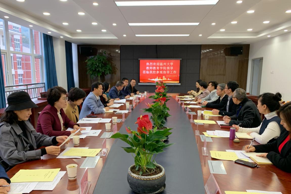 为加强人才培养的全过程管理,从源头上提升学前专科生的培养质量,2019年11月27日下午,90直播 党委书记何毅、副书记彭小媚、学前系主任李娟、副主任陈铿及教学科、学前教育科负责人和部分专任教师等一行近十人赴90足球直播网 专科教学点温州市中等幼儿师范学校进行调研并开展检查指导工作。温州市中等幼儿师范学校校长蒋高烈、副校长戚强建和各科室负责人接待90足球直播网 指导检查组一行。