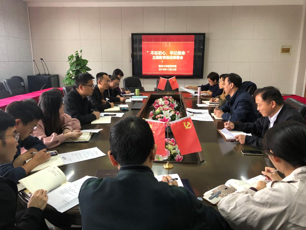11月22日中午,学院党委召开“不忘初心、牢记使命”主题教育推进部署会,学院各党支部书记、支部委员及党委相关同志参加会议。