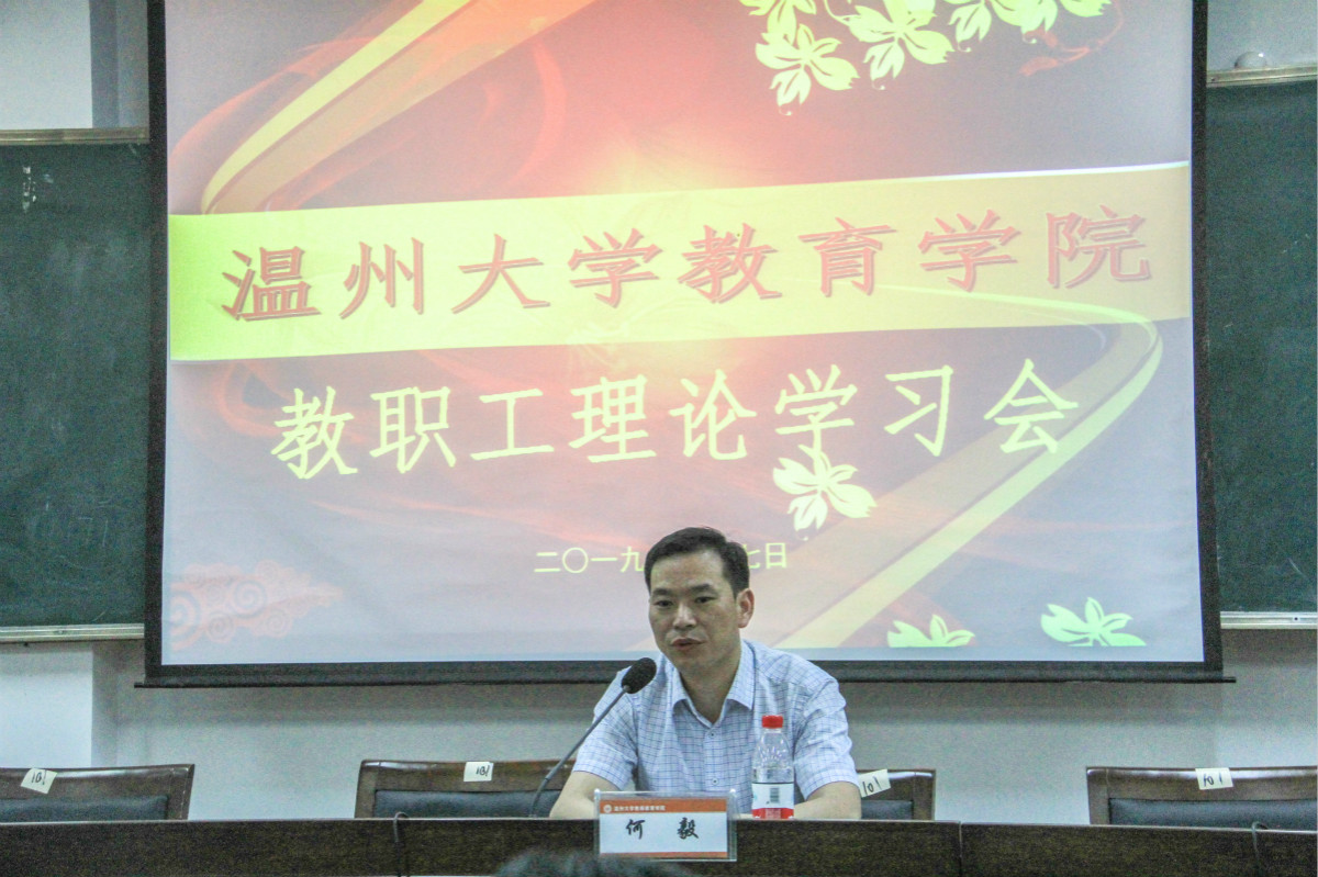 2019年7月7日下午,90足球直播网 在南校区9C301报告厅召开全体教职工理论学习会。学院党委书记何毅做了题为《不忘初心、牢记使命,坚定不移跟党走》的报告。