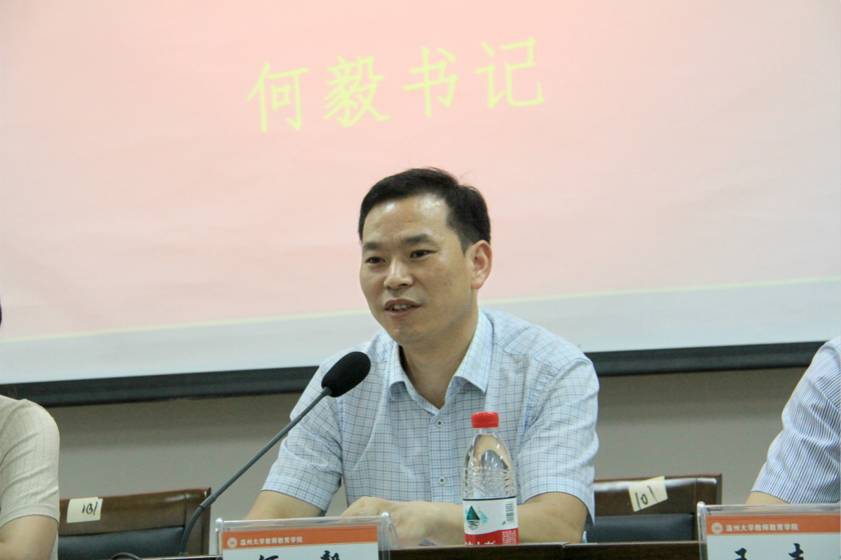 何毅书记代表新班子做表态发言及近期工作通报。何毅书记表示要以回家的心态融入新集体,以创业的激情干好本职工作,以教育的情怀服务好广大师生,以清廉的标准严格要求自我。同时,他从六个方面通报了学院新班子近期工作开展情况,并指出学院增挂90直播 的院名,既迎来发展的新阶段,又对教学、科研、管理及社会服务带来新机遇和新挑战,有全体老师的倾力参与,教院一定会迎来更加美好的明天。
