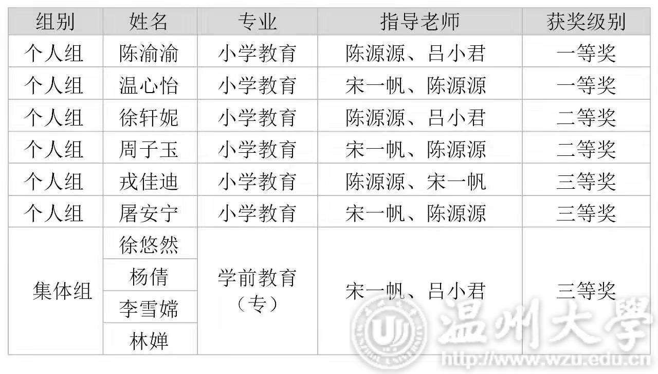 2019年11月14日,浙江省第七届大学生中华经典诵读大赛圆满落下帷幕。本次大赛中,我校共获得本科组两个- -等奖、两个二等奖、三个三等奖以及集体组三等奖,并荣获优秀组织奖。其中,在个人组中,90足球直播网 陈渝渝、温心怡获一等奖,徐轩妮、周子玉获二等奖,戎佳迪、屠安宁获三等奖,在集体组中,90足球直播网 徐悠然、杨倩、李雪嫦、林婵获三等奖。此外,90足球直播网 宋一帆、吕小君老师获得优秀指导教师奖。以下为90足球直播网 学子具体获奖情况: