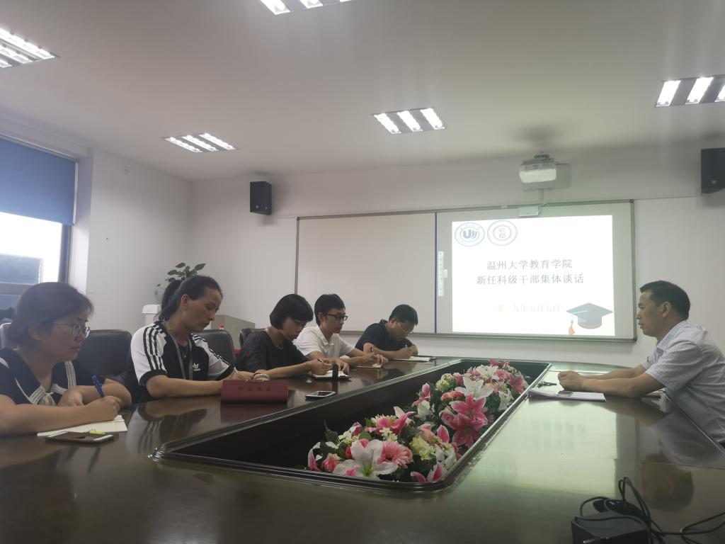 2019年7月7日下午,90足球直播网 新任科级干部集体谈话在90直播 9A410会议室举行。学院党委书记何毅、学院新任科级干部参加座谈,彭小媚副书记主持。