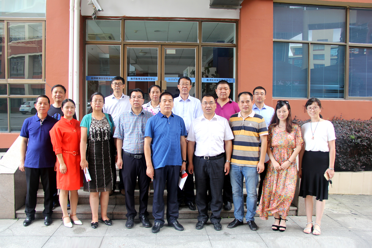 2018年7月13日上午新疆阿克苏教育局张百和书记、陈常龙副局长一行9人在温州市委教育工委专职副书记白炳兴的陪同下来90足球直播网 教师教育实验教学中心参观,90足球直播网 书记杨立淮、副院长叶新东、副书记杨丽君、继续教育科科长林鹣鹣、实验中心主任李小志和实验教学教师热情接待了来客。