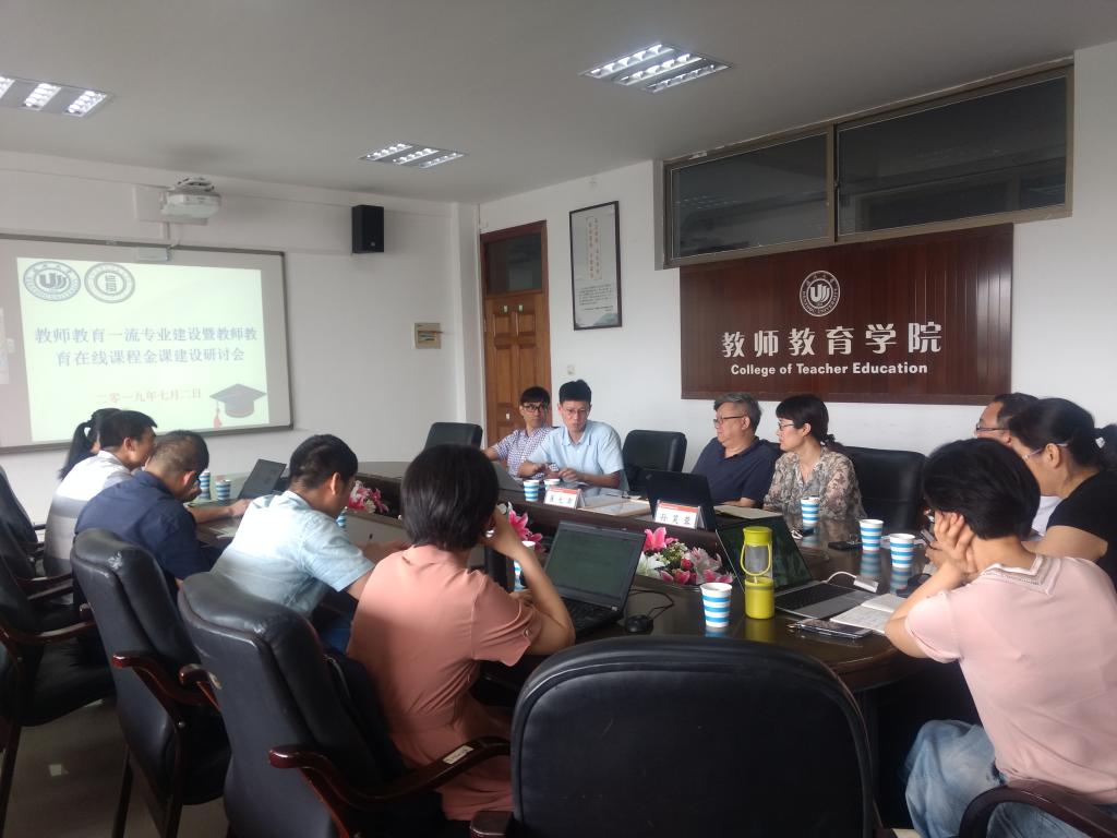 为进一步提高学院师范类人才培养能力,促进教师教育内涵式发展,2019年7月2日下午,温州大学教师90直播 召开了“教师教育一流专业建设暨教师教育在线课程金课建设研讨会”。会议由孙芙蓉院长主持,并特邀华东师大崔允漷教授、温州大学创业人才培养学院施永川院长莅临指导。