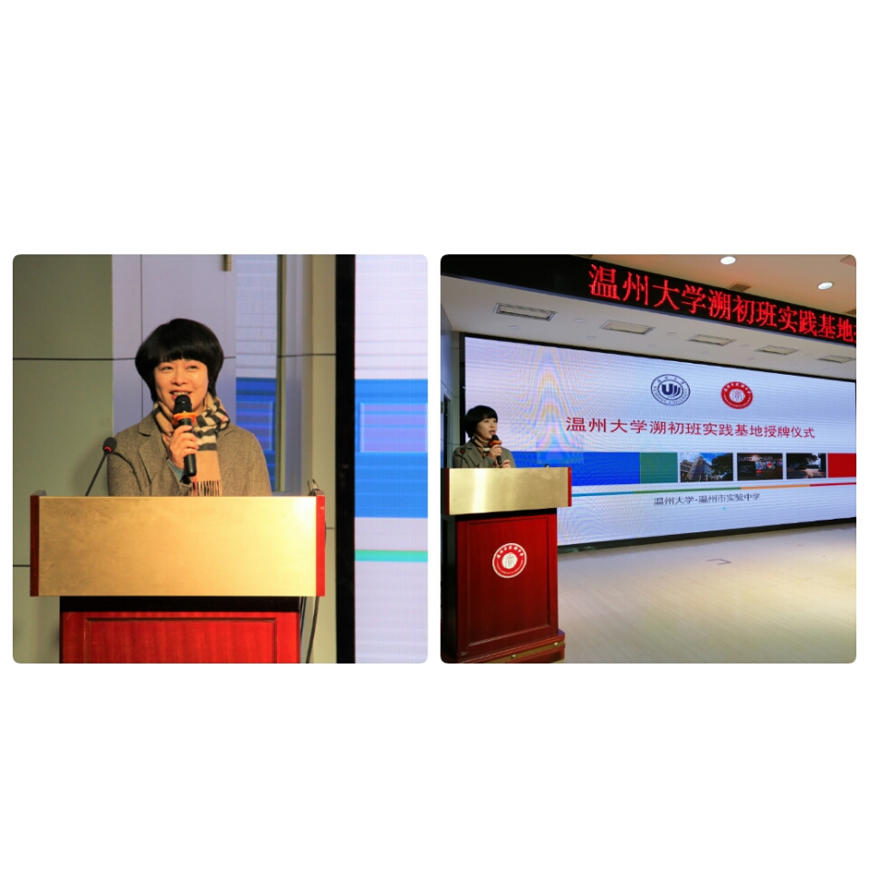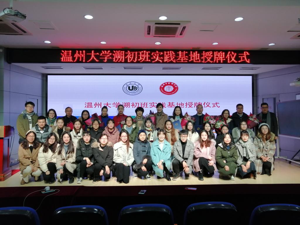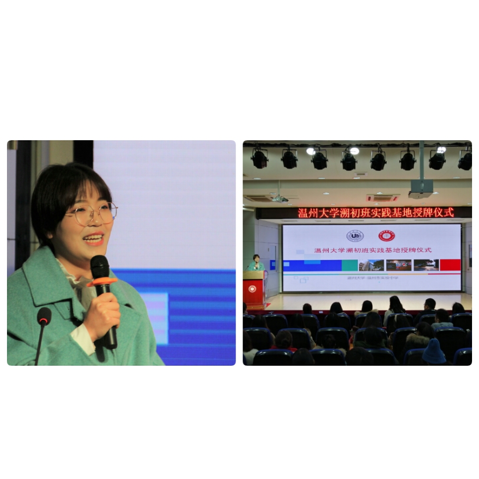 12月28日下午,温州大学教务处副处长胡瑜、温州大学教师90直播 副院长彭小明、温州大学教师培养基地办公室主任朱伟老师、第十期溯初班班主任金丽芳、溯初班管理工作秘书金荣乾以及第十期溯初班全体学员前往温州市实验中学参加“温州大学溯初班实践基地”授牌仪式,温州市实验中学校长倪彤、副校长黄慧以及溯初班校外各专业实践导师们共同参加本次活动。温州市实验中学教师发展处主任何倩主持本次活动。