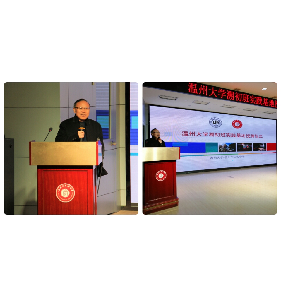 携手并进育人路,共促教育新发展。紧接着彭小明副院长以温州大学的发展现状作为切入点,进一步对溯初班的发展历史、荣誉奖项作简短的介绍。温州市实验中学作为温州名校,溯初班是作为温大师范精英班,此次实践基地的建立是试图浙南地区教育界的“黄埔军校”首次摸索与尝试。彭院长更是叮嘱溯初班学员在导师的辛勤指导下,虚心好学,学会教书育人并心怀感恩,学会自我发展并砥砺前行,不辜负爱,更不辜负期待。