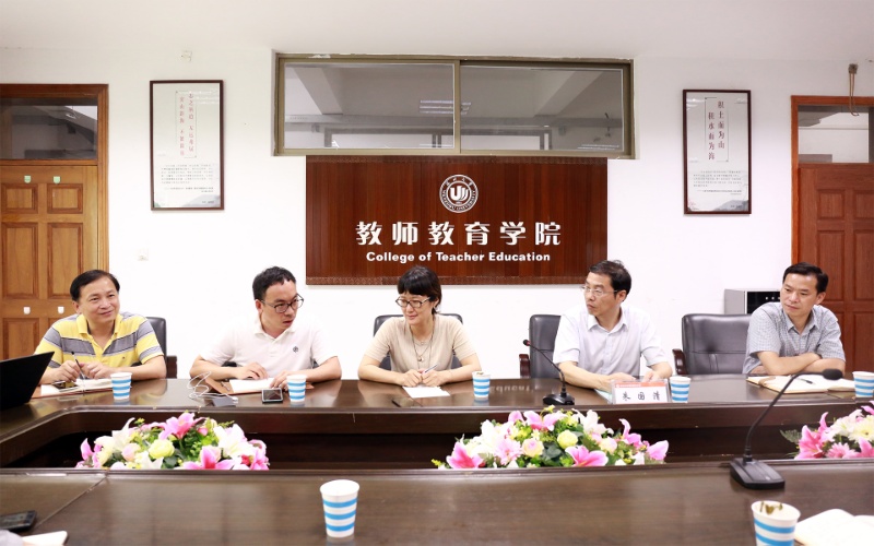 6月29日,省教育厅基础教育处朱国清副处长、温州市鹿城区教育局普教科邵文立科长一行来我中心指导工作,中心主任、学院院长孙芙蓉,学院书记何毅,中心常务副主任、学院副院长叶新东、学院副院长王志强、中心副主任邓纯考、中心部分成员等参加会议。