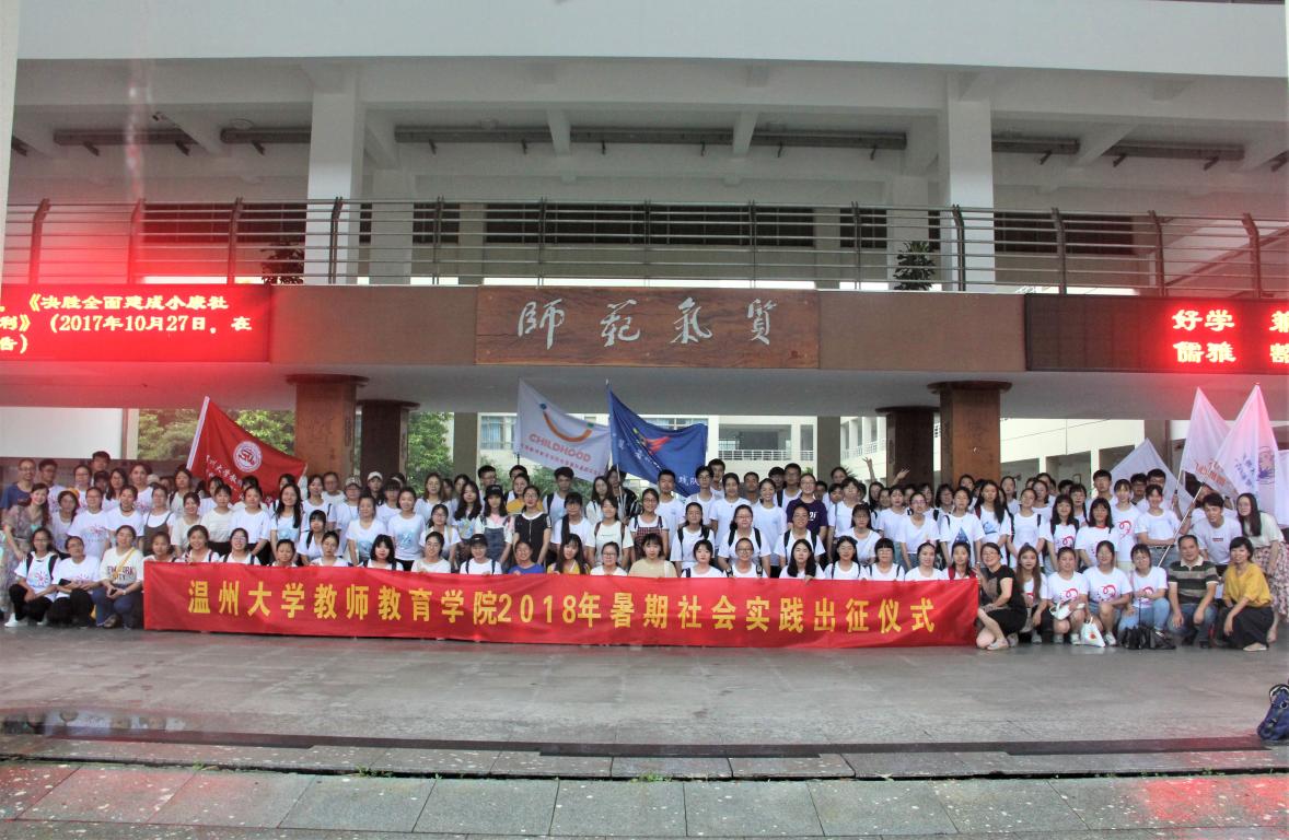 7月4日下午,温州大学教师90直播 暑期社会实践出征仪式于南校区9B-301举行。参与本次出征仪式的嘉宾有教师90直播 党委书记杨立淮、副书记杨丽君,市委党校阮爱清博士,教育系书记周奇老师,以及来自儿童认知能力训练智慧之花暑期社会实践队的徐速老师、来自走进科学世界暑期社会实践队的金建钰老师、来自心翼暑期社会实践队的徐淑慧老师、来自知心姐姐暑期社会实践队的严晓秋老师、来自悦享童年暑期社会实践队的邵胜男老师、来自青愿逐梦暑期社会实践队的吴超智老师。