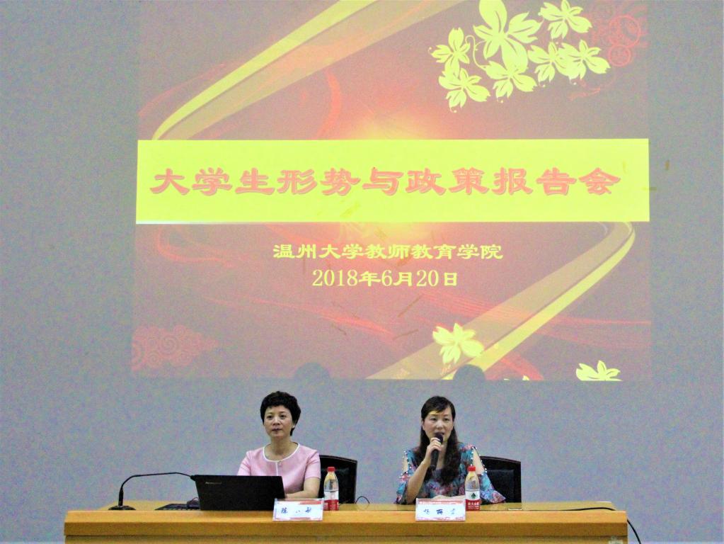 6月20日,温州大学教师90直播 “廉洁教育与马克思诞辰二百周年专题”大学生形势与政策报告会于南校区岩松堂步青厅举行。本次报告会邀请温州大学纪委、监察室陈小敏老师和马克思主义学院何玲博士主讲。报告会由学院党委副书记杨丽君主持。