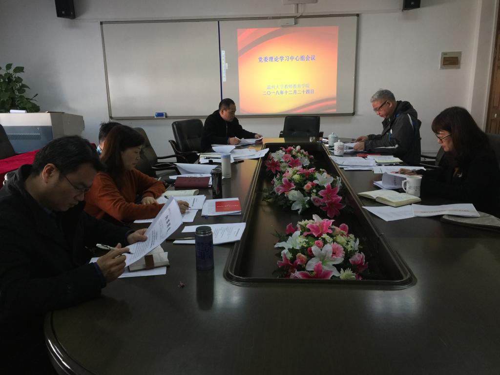 12月24日上午,90足球直播网 在南校区9A410会议室召开理论学习中心组会议,学院党政班子领导参加,杨立淮书记主持。