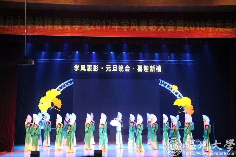 12月27日18点30分,为丰富同学们的课余文化生活,搭建师生互动交流的平台,营造良好的文化生活氛围,温州大学教师90直播 2017学风表彰大会暨2018元旦晚会于育英大礼堂隆重举行。