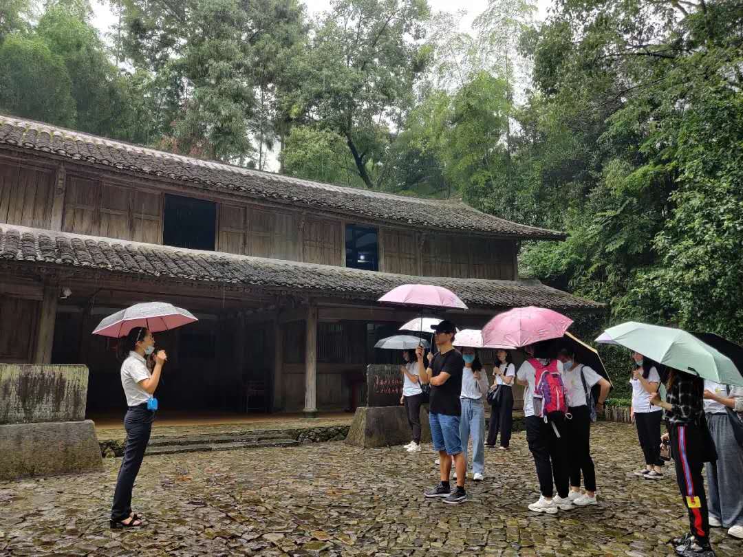 2020年7月10日,在盘旋蜿蜒的红色道路上,90足球直播网 红动研途暑假实践队成员走进了温州市浙南(平阳)抗日根据地旧址群,在蒙蒙细雨中撑着伞一步一个台阶一起重温红色记忆,感受红色气息。细雨打在队员伞上,也无声地激起了每位队员身体里红色脉搏的跃动。实践考察从第一站--参观中共浙江省一大会址开始就处处充满了浓厚的红色研学氛围。会址里那一面鲜艳的旗帜、几张供开会用的简朴的凳子、刘英同志的办公室、厨房和卧室等陈设让我们深切感受到虽然那个时候的革命生活艰苦朴素,但革命的信念却毅然坚定。