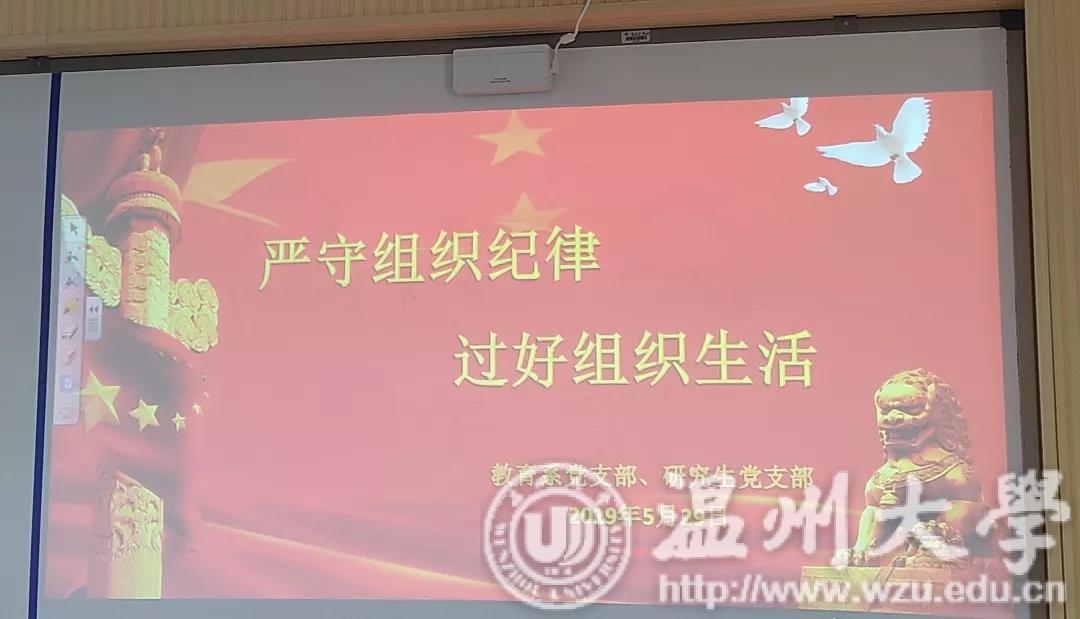 5月29日下午3:30,温州大学教师90直播 教育系党支部和研究生党支部在南校区9C401开展以“严守组织纪律,过好组织生活”为主题的警示教育活动。参会人员有教师90直播 教育系支部的全体教师党员和研究生党支部的学生党员。本次活动由教育系支部书记周奇老师主持。