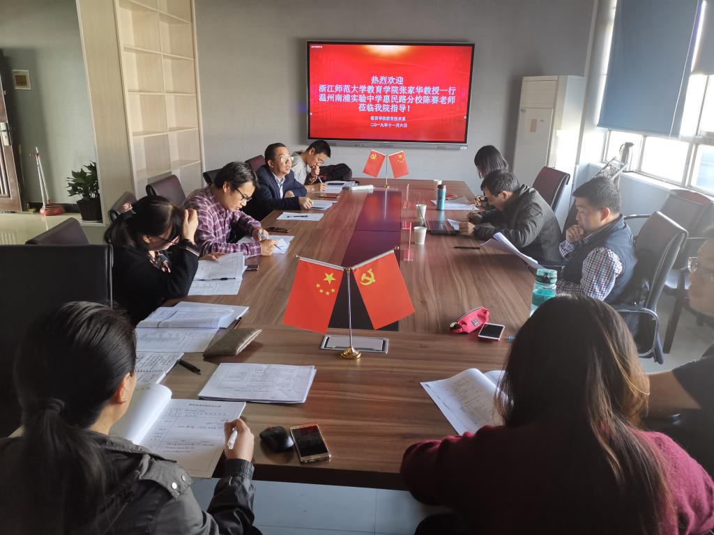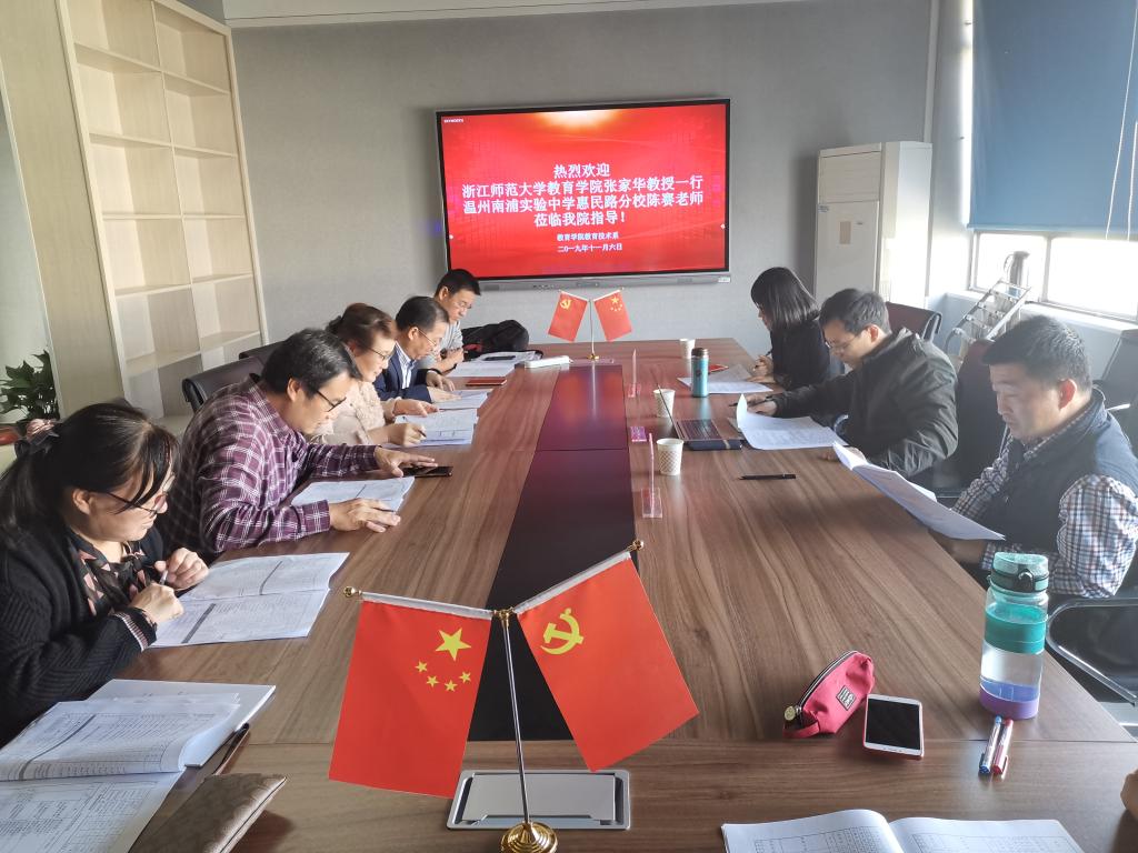 2019年11月6日上午,90足球直播网 教育技术学专业召开新一轮专业人才培养方案论证会。本次专业人才培养方案论证会很荣幸地邀请到浙江师范大学教育技术学系主任张家华教授、王小明教授和南浦实验中学教育集团温州市信息技术骨干教师陈赛老师莅临90足球直播网 指导。我校的教师教学发展中心主任王佑镁教授、90足球直播网 叶新东副院长及教育技术学系的全体教师参加了本次专业人才培养方案论证会。