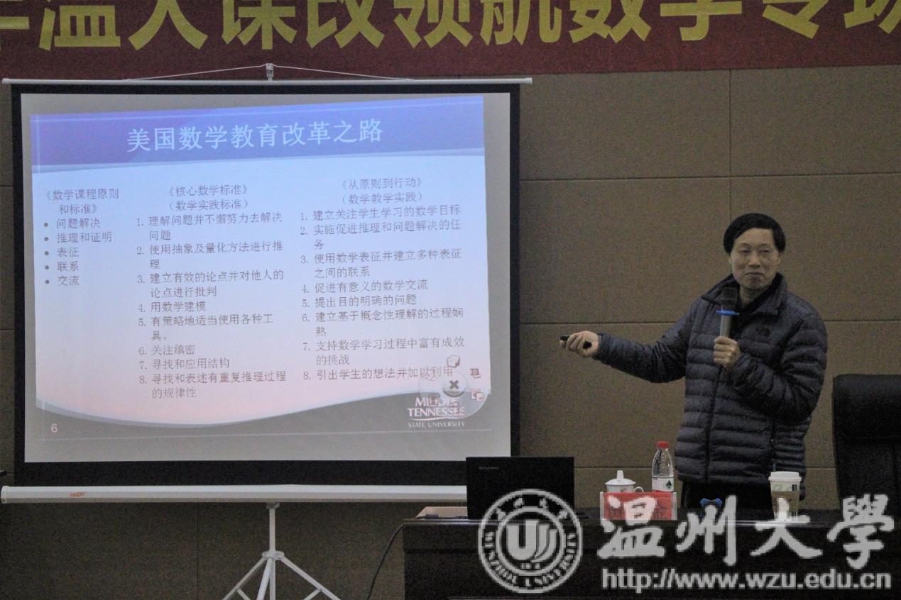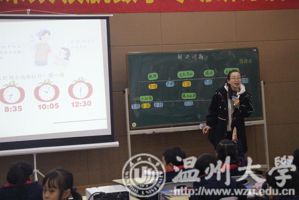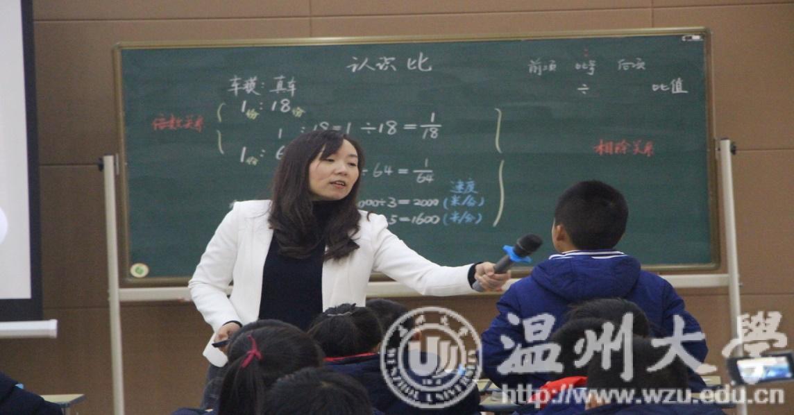 12月12日,温州大学教师90直播 小教系师范生数学学科课改领航活动如约而至。本次活动温大小教系主任章勤琼博士特地邀请了美国中田纳西州立大学黄金荣教授莅临指导。会场高朋满座,既有温州大学小学数学特级教师工作站的学员,也有温大的“准老师”们。本次活动的主要从三堂精彩的课例中分析学生学习路径。