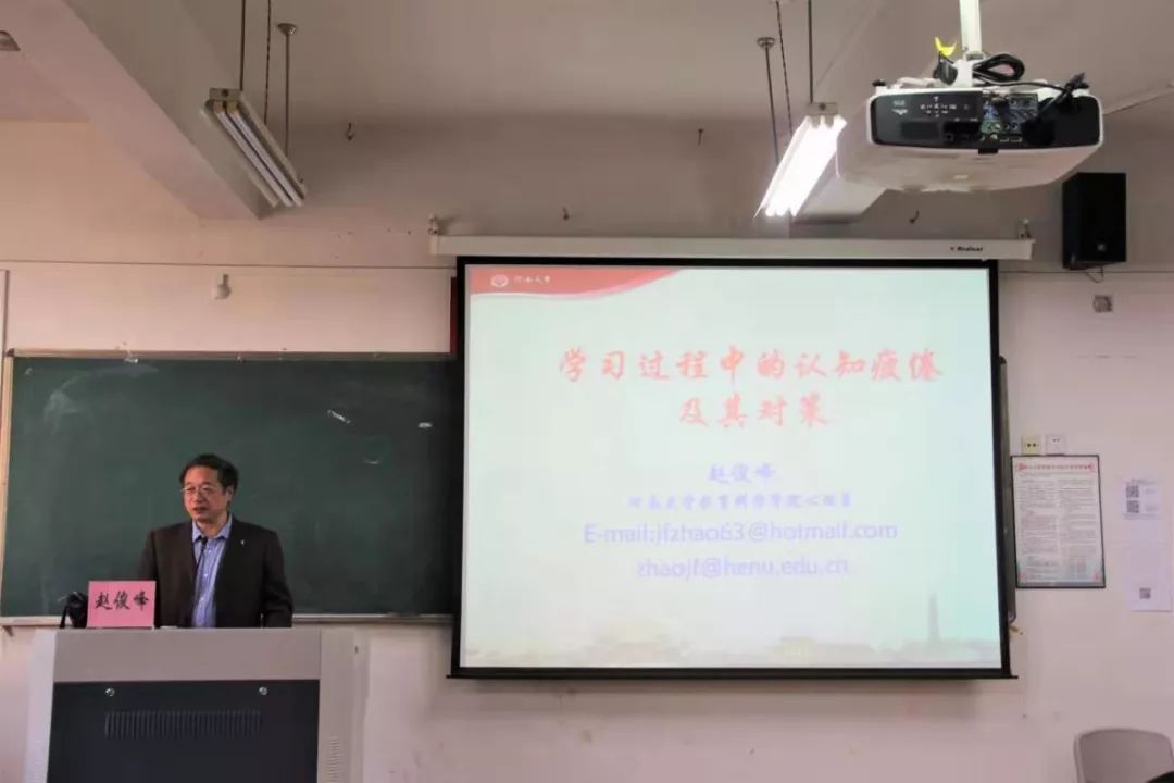 为充实90足球直播网 应用心理学系学子的专业学识,帮助应对学习过程中认知疲倦等问题,10月30日下午,90足球直播网 于9B301开展了《学习过程中的认知疲倦及其对策》专题讲座。讲座由河南大学教授赵俊峰主讲,出席本次讲座的有90直播 心理学系副主任崔冠宇、心理学系教授徐速,到场的还有90足球直播网 教育学及心理学专业的研究生和本科生。本次讲座由90足球直播网 王志强副院长主持。