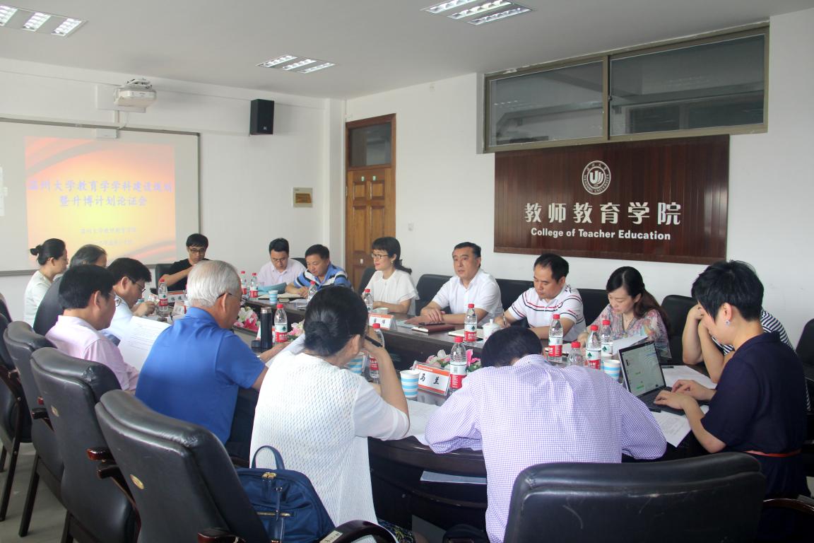 2018年5月30日,90足球直播网 在南校区教育楼410会议室召开了温州大学教育学学科建设规划暨升博计划论证会。薛伟副校长、上海师范大学90直播 院长夏惠贤教授、上海师范大学90直播 谢利民教授、浙江大学90直播 盛群力教授、杭州师范大学90直播 马兰教授、温州大学周湘浙教授、温州大学人事处处长王佑镁教授、温州大学科学技术处长洪振杰教授、温州大学人文社科处处长刘玉侠教授、温州大学计划财务处处长张若妤高级会计师、温州大学教师90直播 领导、各教育学学硕方向、专硕方向负责人、硕导及学术骨干等参加了此次论证会。